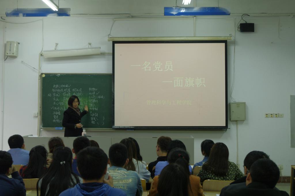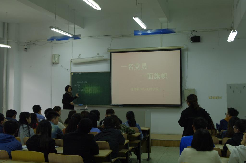 4月6日下午,学院在教学楼1-104教室开展“书记讲党课”活动,学院党委书记黄学萍以“一名党员,一面旗帜”为主题,给全体党员上了一堂别开生面的党课。