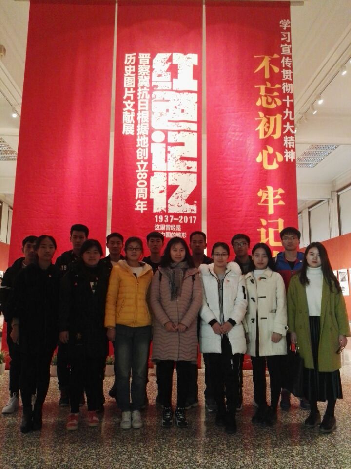 为响应十九大的号召,陶冶学生爱国情操、增强学生责任担当,管理科学与工程学院全体学生党员于2017年11月23日下午13:00,由学院党委副书记李光和三位学生党支部书记的带领下,参观了河北省博物院。本次展览的主题是“不忘初心,牢记使命”,用影像这种艺术形式直观、形象地反映了当时的具体情况。