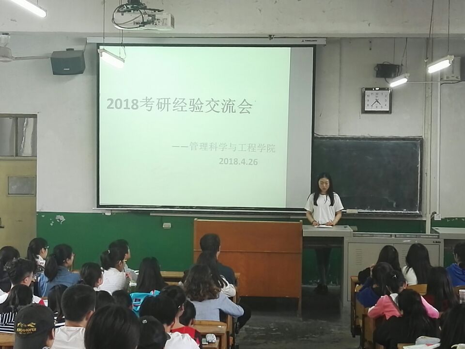 为了提高 2015级学生的考研热情,明确考研目标,掌握考研技巧,了解考研信息,管理科学与工程学院于2018年4月26日下午四点在教三楼202成功举办了2018年考研经验交流会。参加本次交流会的有学院副院长董志良、副书记李光、辅导员魏静、谭园园以及2014级考研成功的四位同学和2017级研究生在读的两位同学。